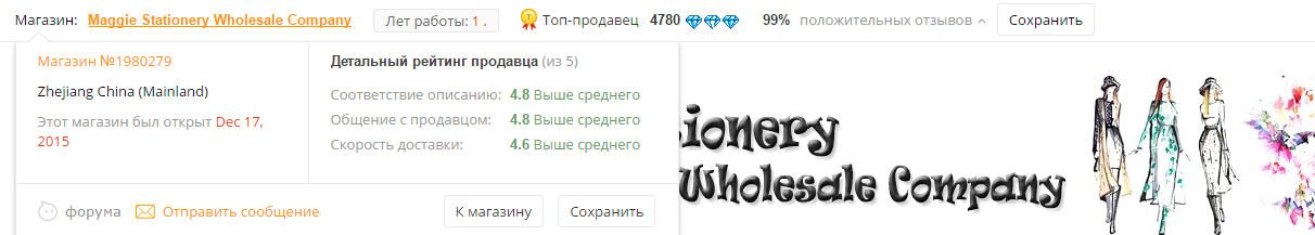 Для последнего можно использовать расширение для Chrome — AliExpress Assistant. Оно также доступно для Firefox, Opera и Яндекс-браузера. Это расширение показывает более детальный рейтинг продавца.