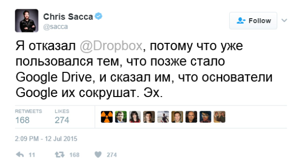 Глуп ли Крис Сакка? Конечно нет. Он невероятно умен. Но и основатели Dropbox оказались достаточно умны, чтобы не последовать его совету.