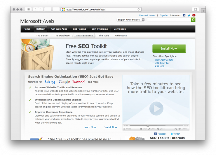 Ссылка из разряда «Ты не поверишь» — бесплатные приложения для SEO от Майкрософта.