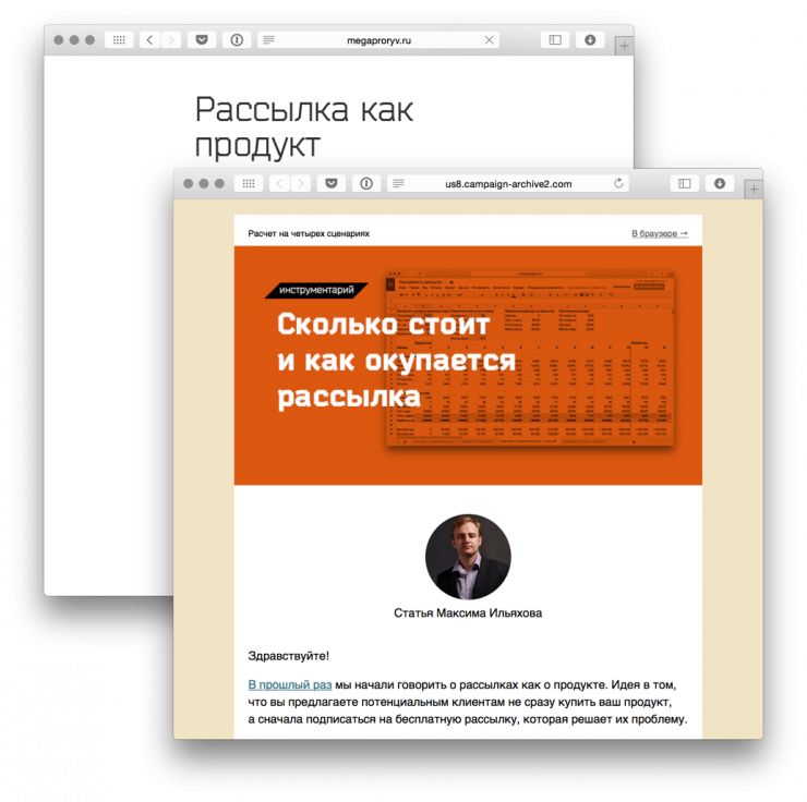 Кроме того, есть отдельная категория — рассылка-продукт. Это цикл полезных статей, курс. Если статьи действительно полезные, то подписчики будут сами разносить их по интернету: советовать друзьям, публиковать ссылки в социальных сетях. Рассылка может быть вирусной.