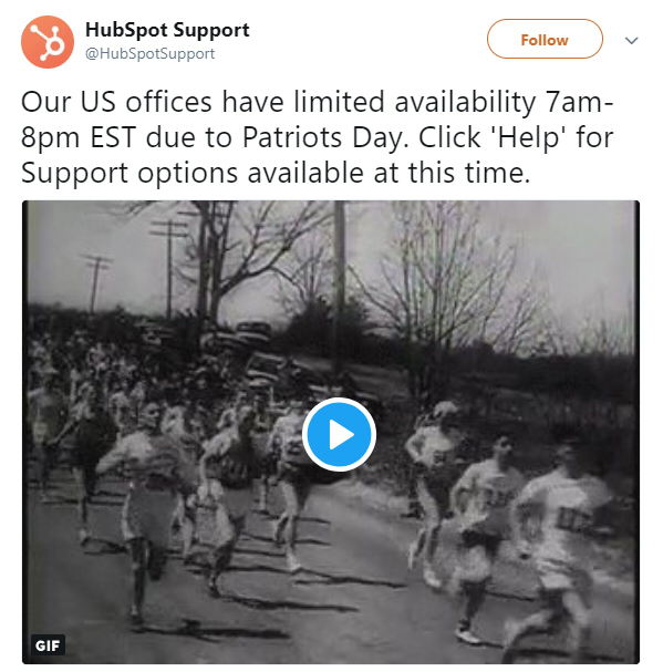 Большая часть команды HubSpot находится в США, но их платформу используют во многих других странах. Благодаря подобным объявлениям клиенты, не знающие о выходном, не будут недоумевать, почему они не могут получить поддержку в привычное для них время.